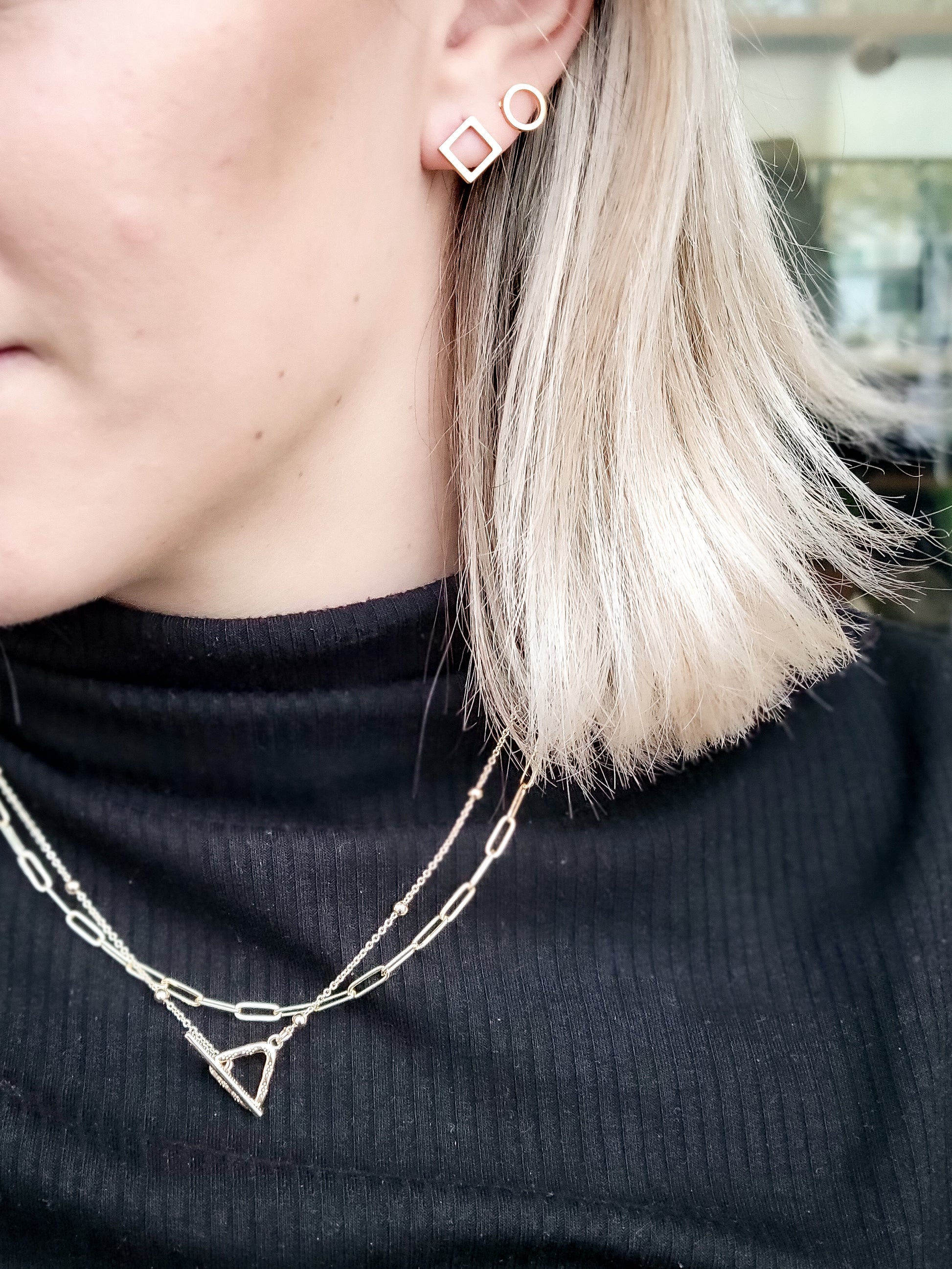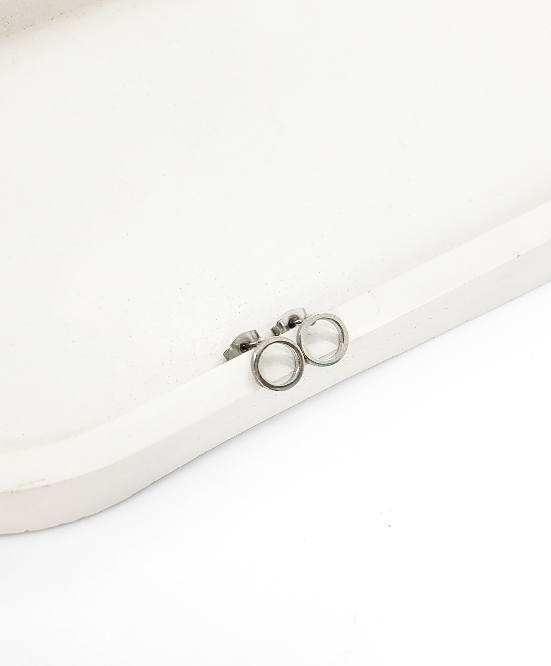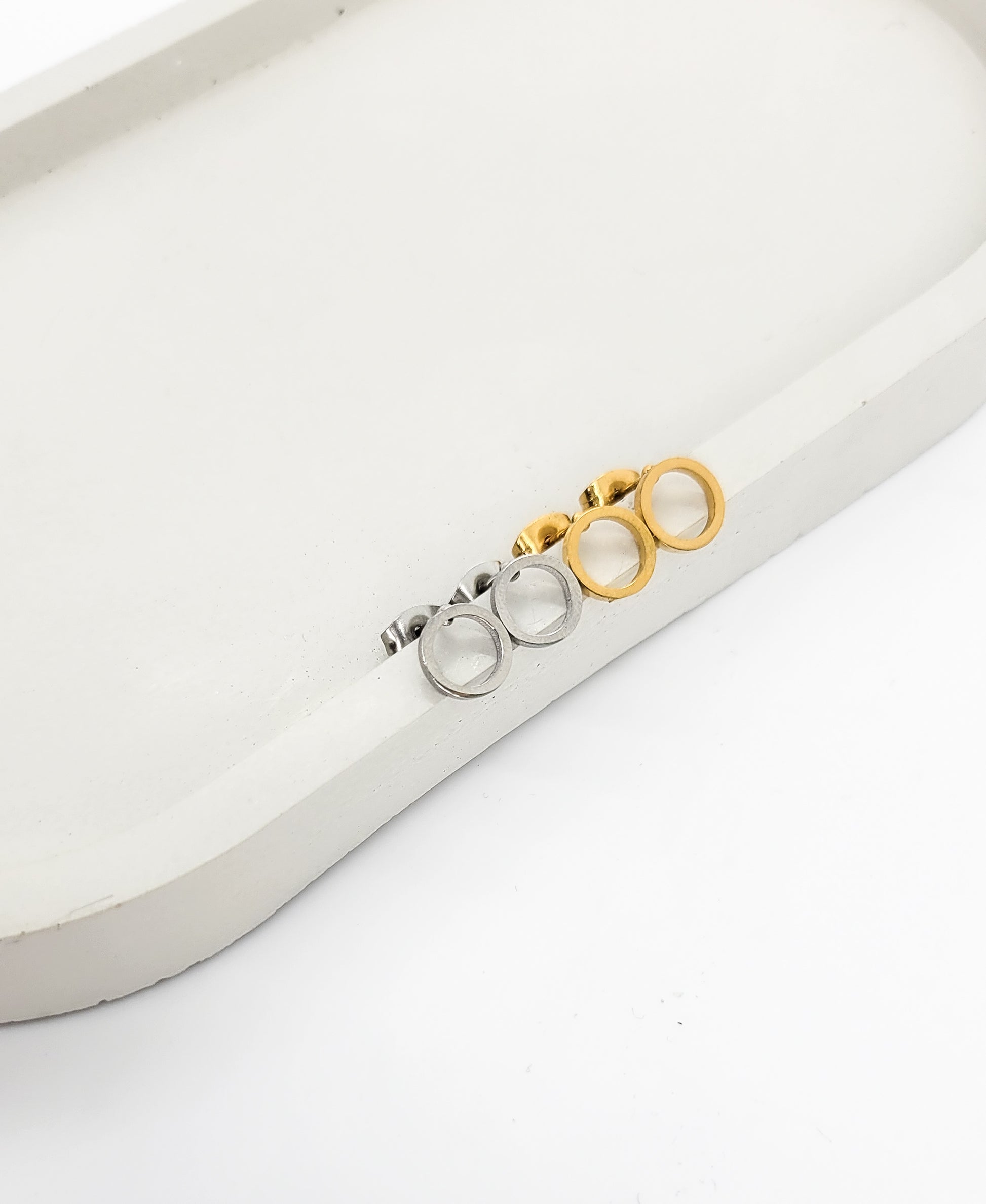 Stud earrings in gold and silver stainless steel.